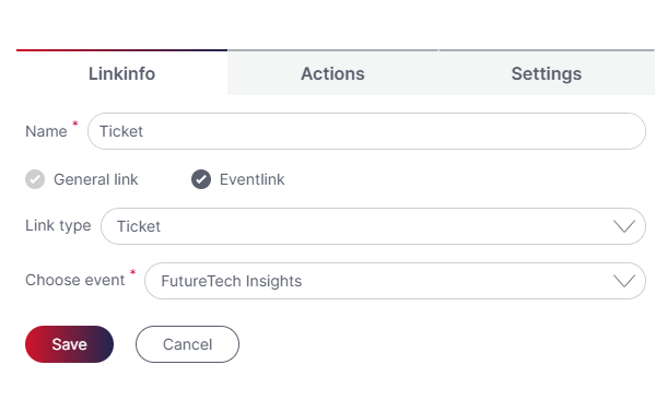 In this campaign, create a link with the type „Event ticket“. In the drop-down menu you now only have to select the corresponding event.