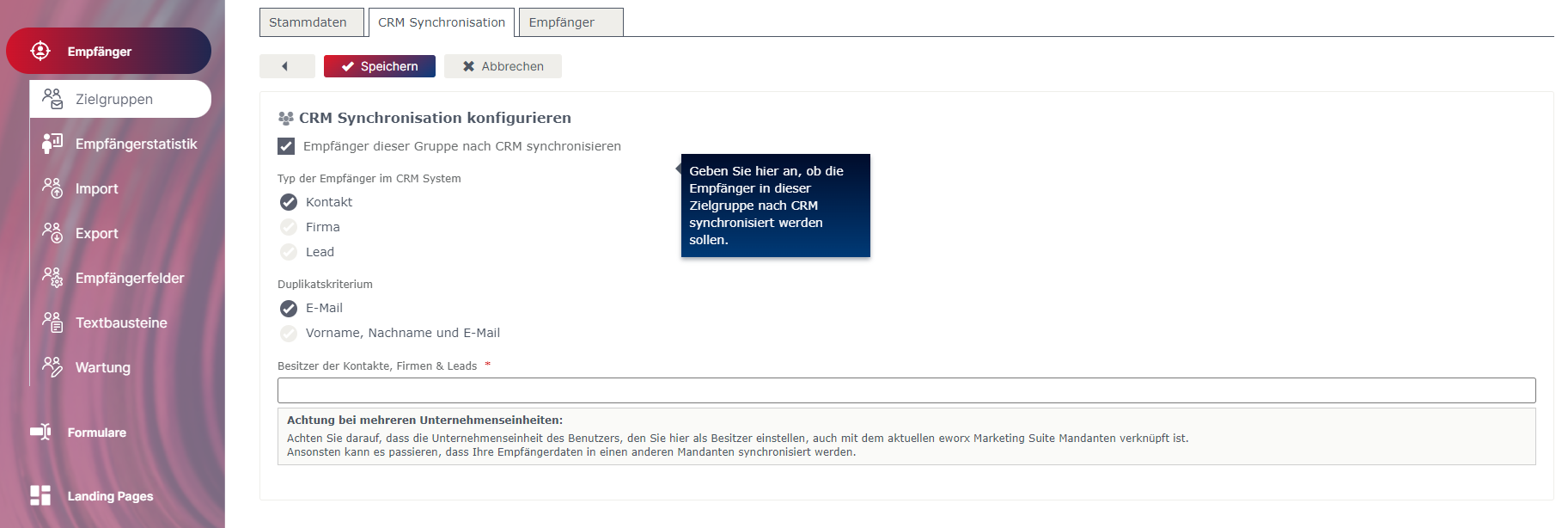 Wie können Zielgruppen & Empfänger nach CRM synchronisiert werden?