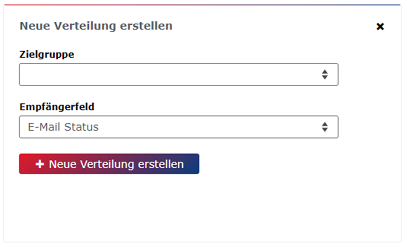 Das tolle dabei ist, dass Sie diese Verteilungen beliebig sowie individuell erweitern können. Klicken Sie auf die entsprechende „Neue Verteilung erstellen“-Schaltfläche, um die Erweiterung vorzunehmen. Nun können Sie die entsprechend gewünschte Zielgruppe Ihrer Verteilung wählen und anhand des Empfängerfeldes die neue Übersicht erstellen.