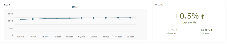 Please note that both the graphical representation and the reported growth are based on the total number of all subscribers in the system. This takes all contacts into account – regardless of their status (e.g. subscribed, unsubscribed, active, inactive or DOI status).