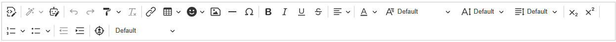 All web-safe fonts are available in the toolbar for the fonts. If “Default” is selected here, the font that is stored as default in the template is used.