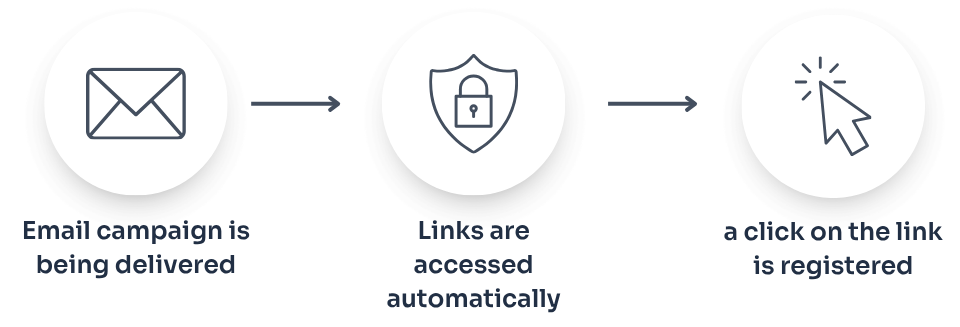 In addition to falsified open rates, clicks can also be affected by tracking and security mechanisms. Many email clients, security gateways, and antivirus programs automatically scan incoming messages for potential threats. As part of this process, links in the messages are automatically clicked to analyze their destination pages for malicious code, phishing attempts, or malware.