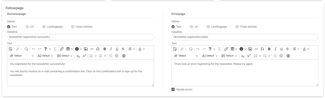 If a form has been sent correctly, you can confirm it with a forward page. In the same way, it is also useful to show a sender that there has been a mistake during the sending, with an error page. In case of an error, the sender should repeat the registration process again. Possible mistakes can for example be empty required-fields.