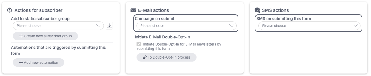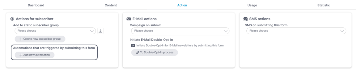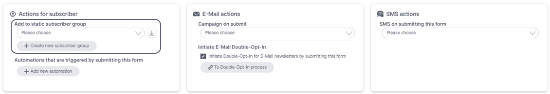 It is possible to assign the subscribers who submitted a form to a static subscriber group. To do so, simply activate. Now you have two options: