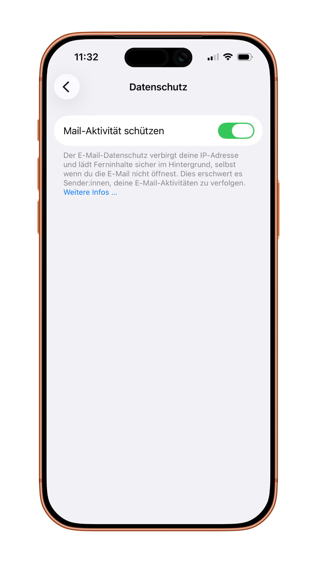 Wenn Mail Privacy Protection aktiviert ist, werden Inhalte von E-Mails – insbesondere Bilder und Tracking-Pixel – automatisch über Proxy-Server von Apple geladen. Dabei wird die IP-Adresse der Empfänger:innen verborgen, wodurch auch die geografische Zuordnung sowie Informationen zum verwendeten Gerät nicht mehr zuverlässig ermittelt werden können.