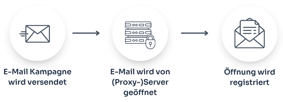 Moderne Datenschutzfunktionen laden Bilder teilweise automatisch im Hintergrund oder über Proxy-Server – unabhängig davon, ob der/die Empfänger:in die Nachricht tatsächlich gelesen hat. Dadurch können Öffnungsraten künstlich erhöht erscheinen, Zeitpunkte der Öffnung verfälscht sein und Standortdaten ungenau werden.
