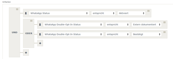 Sobald in der eworx Marketing Suite die Zustimmung für WhatsApp-Newsletter erfolgt, wird automatisch die Systemgruppe „Aktive WhatsApp-Empfänger“ angelegt. Diese erleichtert den ersten Einstieg in den Versand von WhatsApp-Newslettern.
